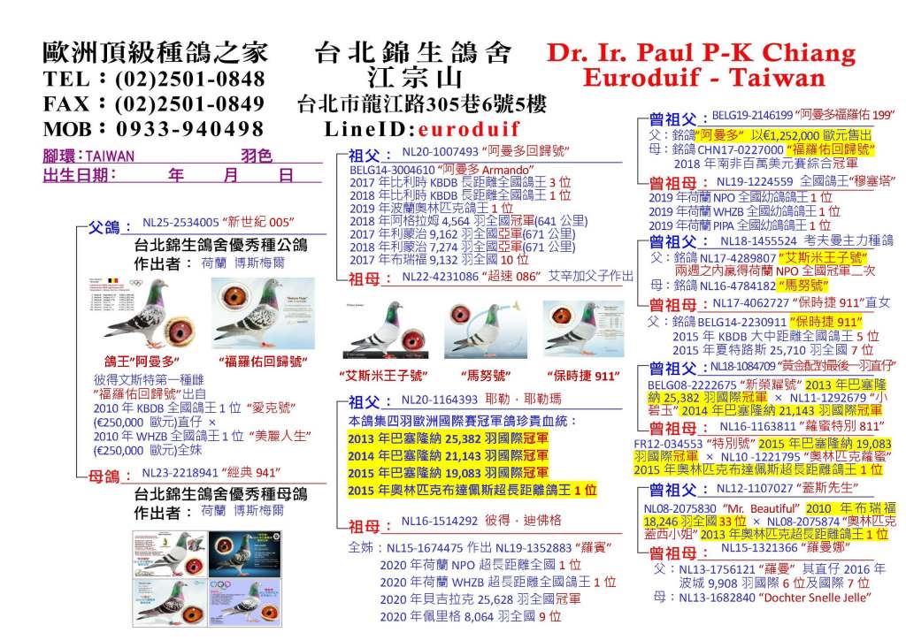Euroduif | 錦生鴿舍