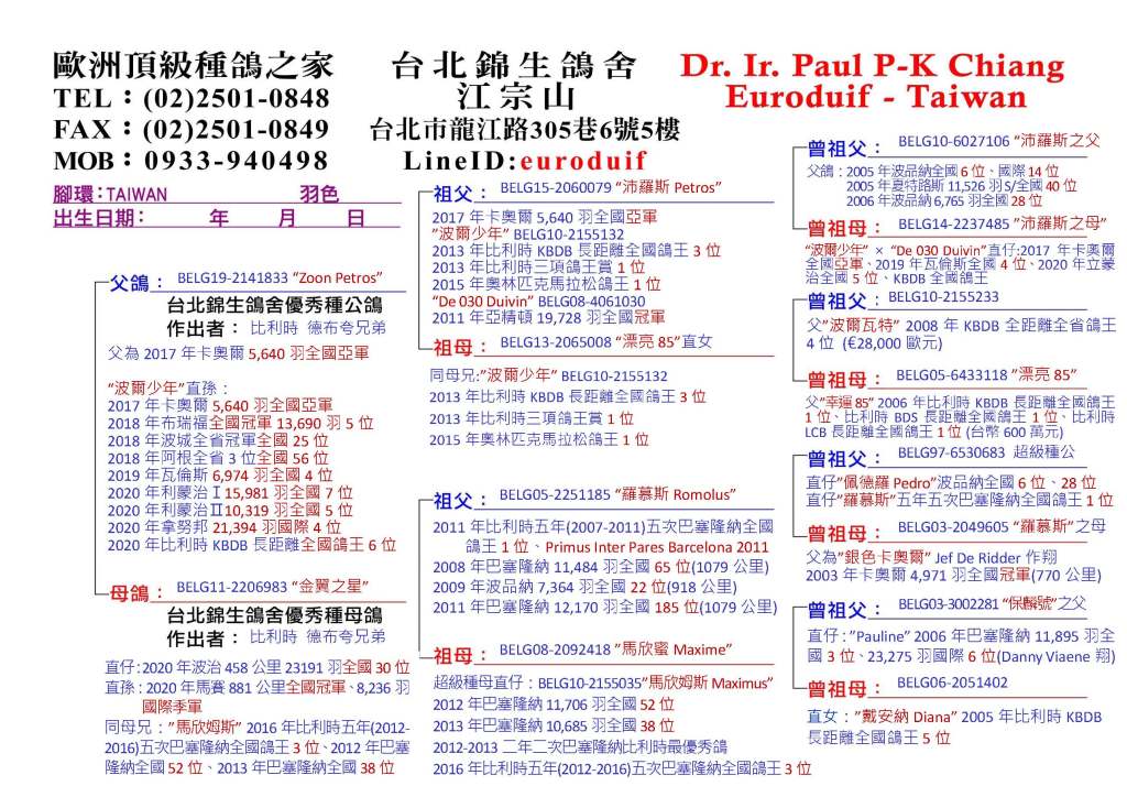 Euroduif | 錦生鴿舍