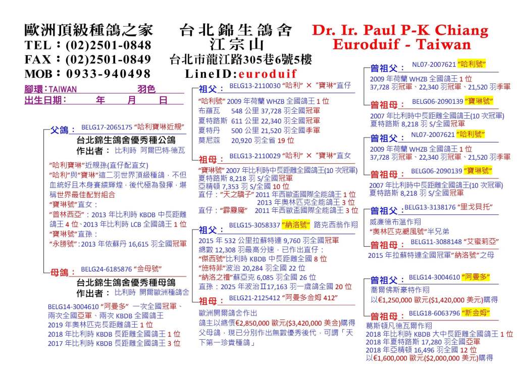 Euroduif | 錦生鴿舍