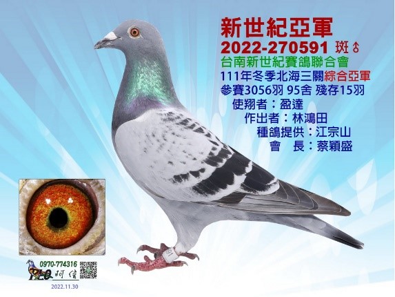 2022-270591 榮獲2022年冬季台南新世紀賽鴿聯合會